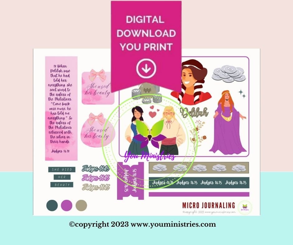 Delilah, Women of the Bible, Bible Journaling Stickers, Micro Bible Card, Bible Insert, Bible Pocket, Printable, Digital Download